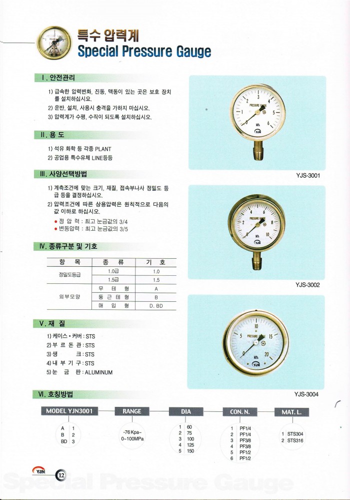 SUS 압력계YJS-3001-100Φ